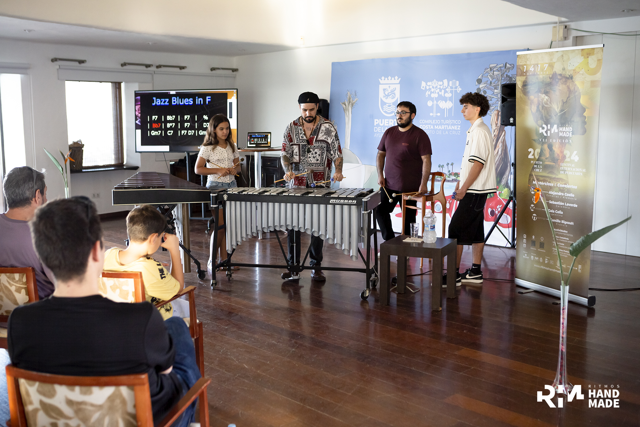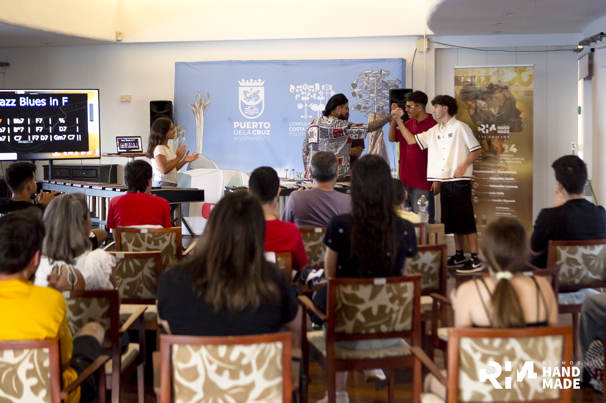 Paralelamente, el festival desarrolló su programa de mediación artística, dirigido a alumnado de distintos institutos de Tenerife. Bajo la guía de Carlos Castañeda y Carlos Costa, estos talleres introdujeron a los jóvenes en la percusión canaria y brasileña, fomentando la participación, el aprendizaje activo y la exploración del ritmo como herramienta de expresión y convivencia.