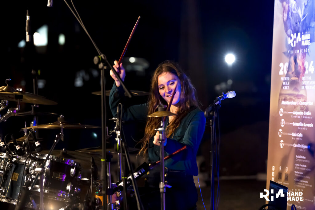 El domingo culminó con la energía de la baterista francesa Camille Bigeault, referente de la percusión moderna y autora del libro The Polyrhythm Odyssey. Su taller participativo y el espectáculo de clausura, en el que compartió escenario con músicos de Canarias y artistas invitados de la edición, ofrecieron una experiencia inolvidable donde los polirritmos y la creatividad colectiva se fusionaron frente al mar.