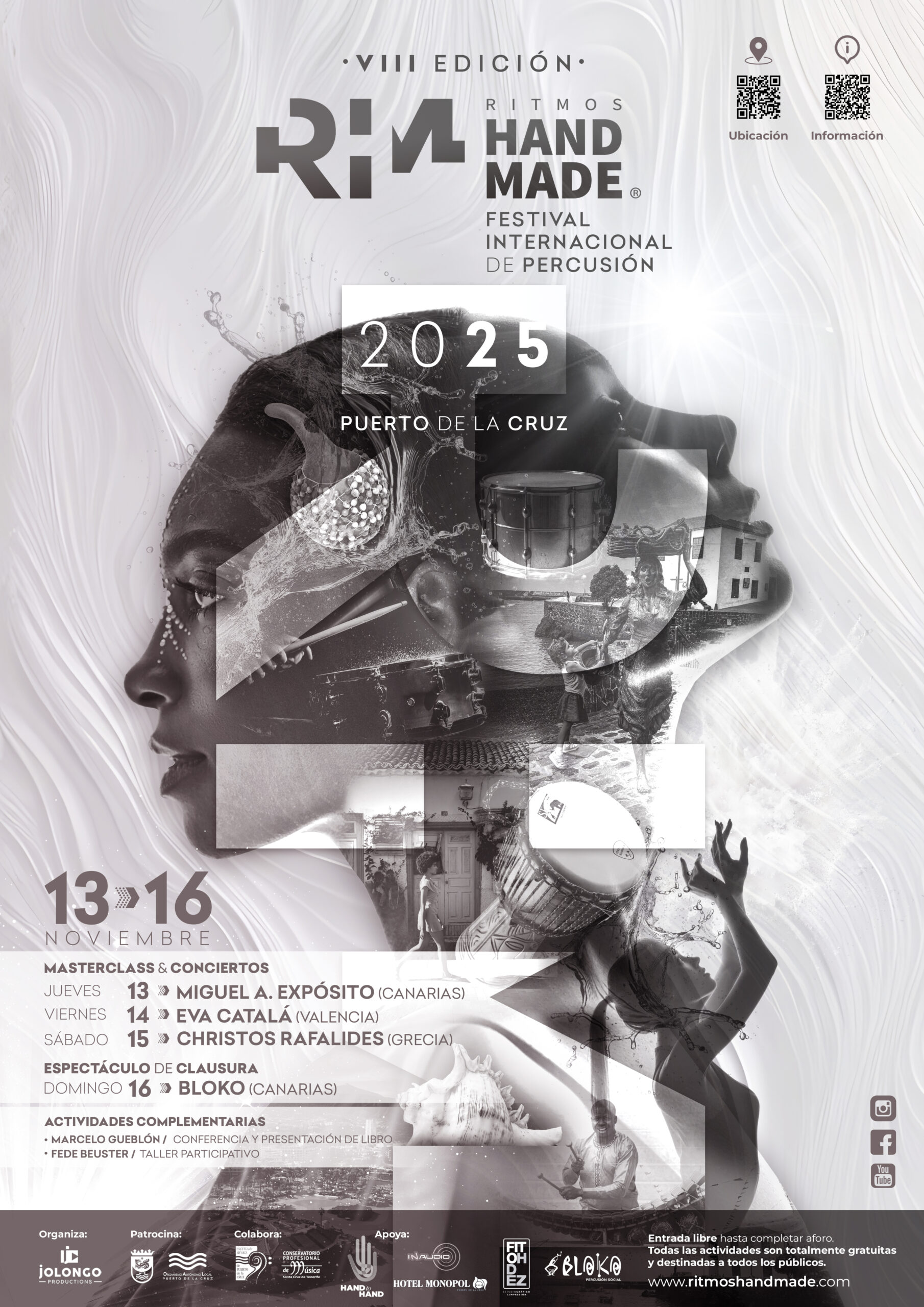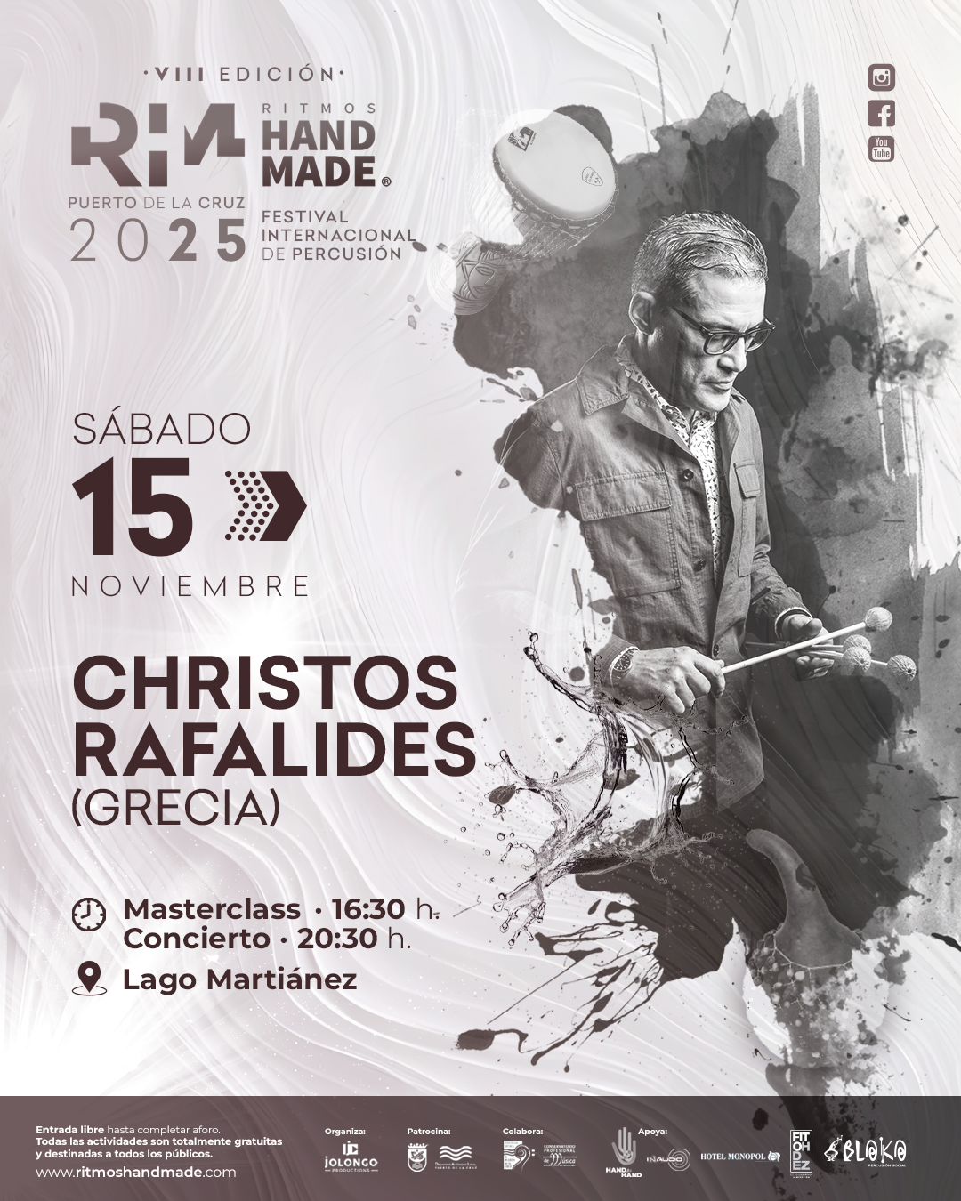 Una experiencia sonora única, donde la diversidad musical refleja el carácter ecléctico del Festival. Los/as percusionistas invitado/a suben al escenario y protagonizan un concierto, acompañados por artistas del panorama cultural canario.