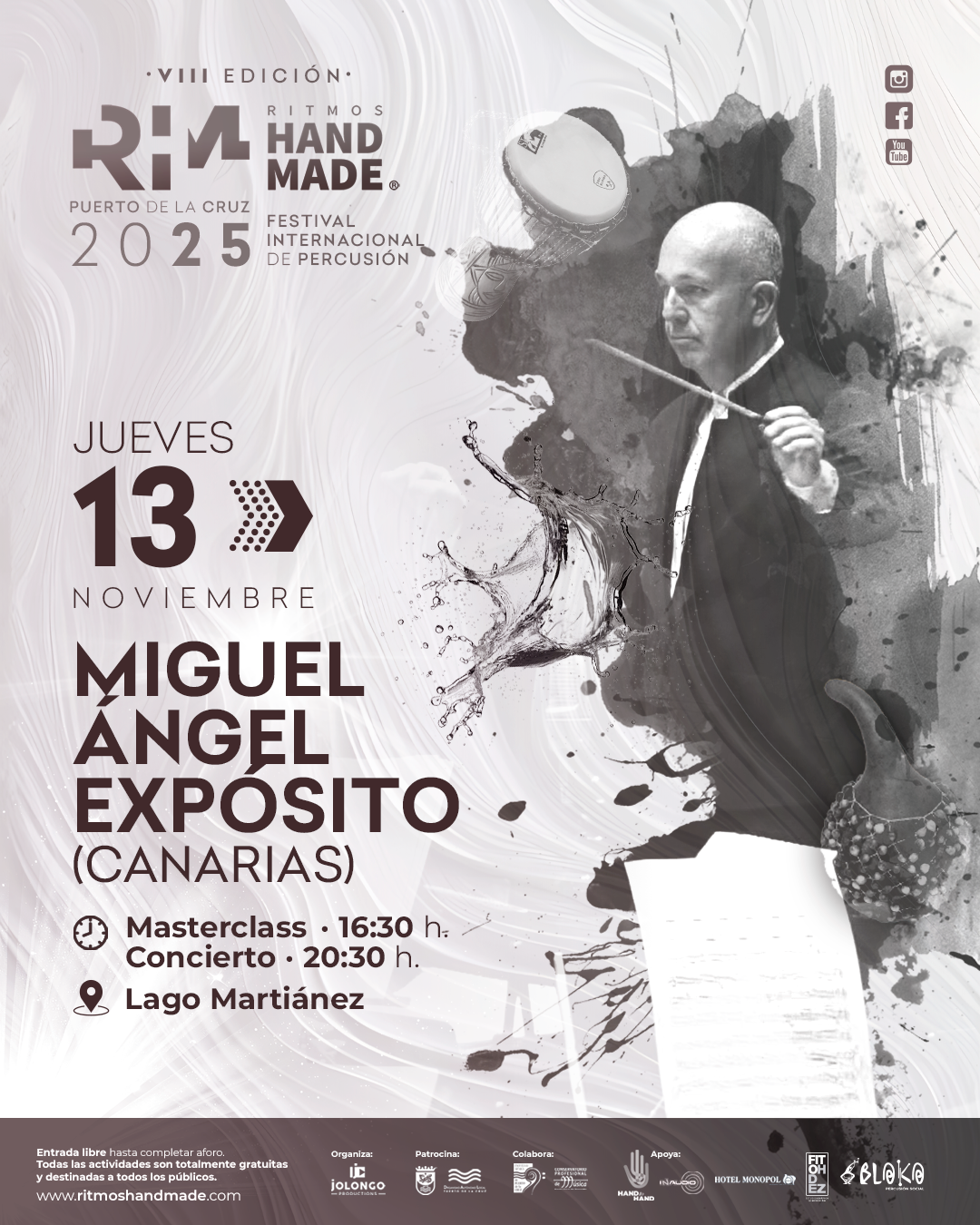 Formado en la Sociedad Filarmónica Nivaria de Arafo y posteriormente en el Conservatorio Superior de Música de Canarias, donde obtiene la licenciatura en Percusión, Miguel Ángel Expósito ha desarrollado una intensa trayectoria vinculada tanto a la interpretación como a la dirección.